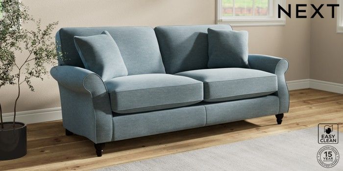 7.2.10 Ashford Relaxed Sit 3 Seater Sofa Fine Chenille Easy Clean Mid Blue Low Turned - Dark | Made Click here to use our website with more accessibility support, for example screen readers