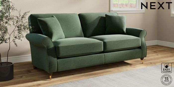 7.2.10 Ashford Relaxed Sit 3 Seater Sofa Fine Chenille Easy Clean Mid Khaki Green Castor - Mid | Made Click here to use our website with more accessibility support, for example screen readers