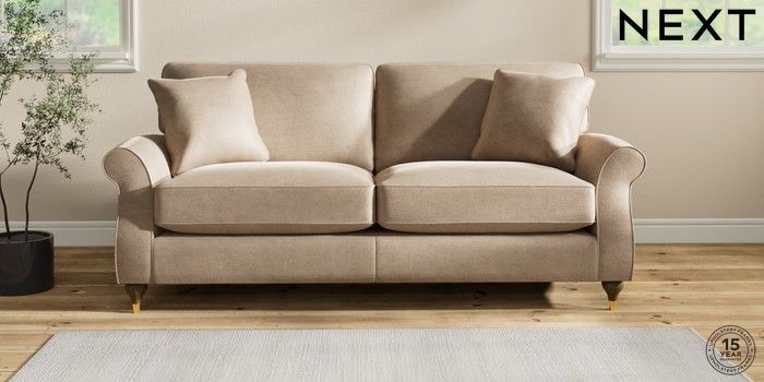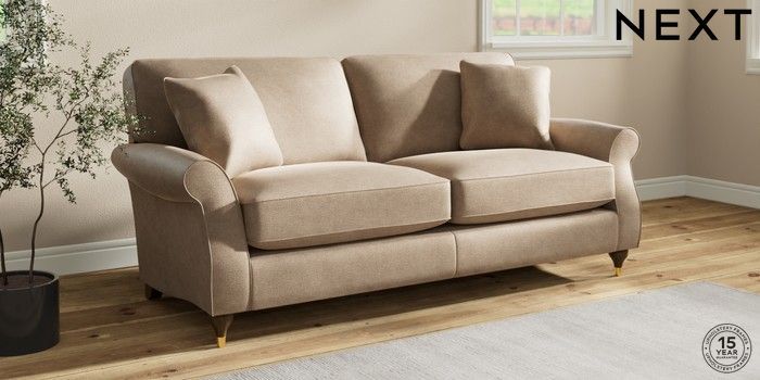 7.2.10 Ashford Relaxed Sit 3 Seater Sofa Luxe Chenille Mid Camel Beige Modern Turned Metal Cap - Mid | Made Click here to use our website with more accessibility support, for example screen readers