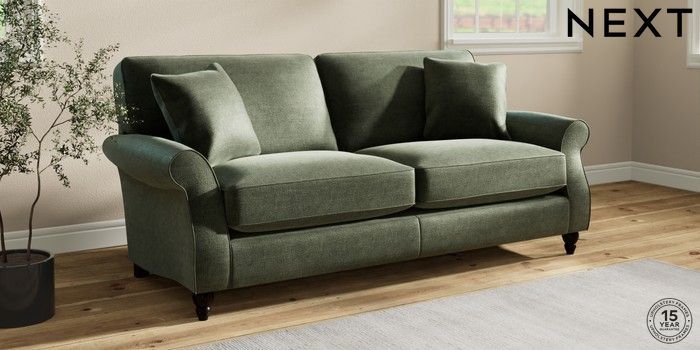 7.2.10 Ashford Relaxed Sit 3 Seater Sofa Luxe Chenille Mid Green Low Turned - Dark | Made Click here to use our website with more accessibility support, for example screen readers