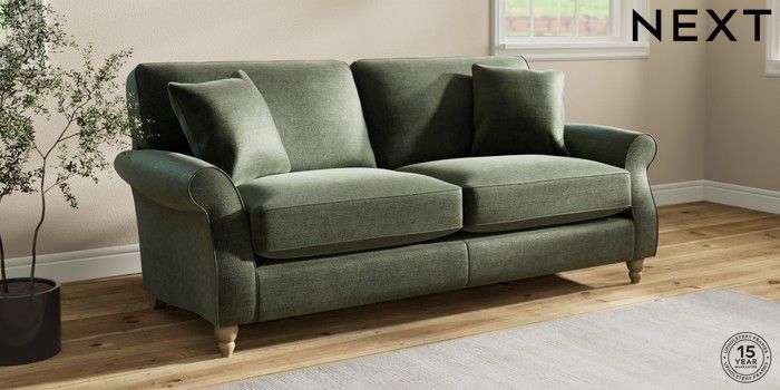 7.2.10 Ashford Relaxed Sit 3 Seater Sofa Luxe Chenille Mid Green Low Turned - Light | Made Click here to use our website with more accessibility support, for example screen readers