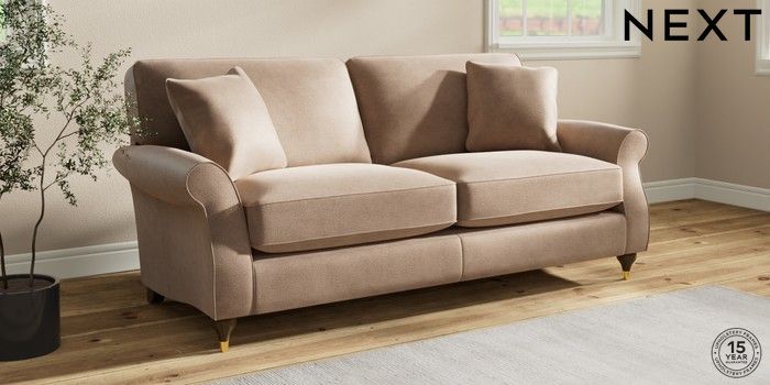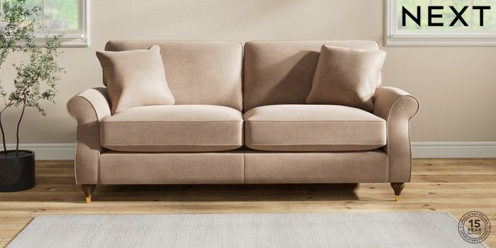 7.2.10 Ashford Relaxed Sit 3 Seater Sofa Luxe Chenille Mid Natural Modern Turned Metal Cap - Mid | Made Click here to use our website with more accessibility support, for example screen readers