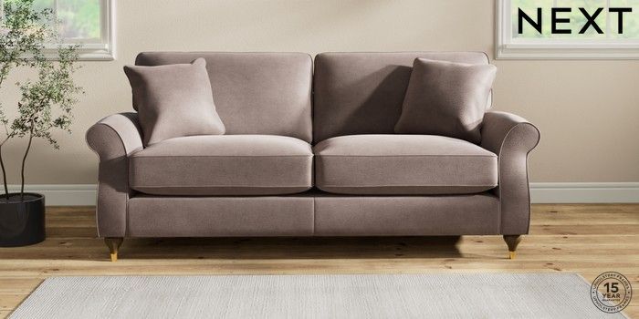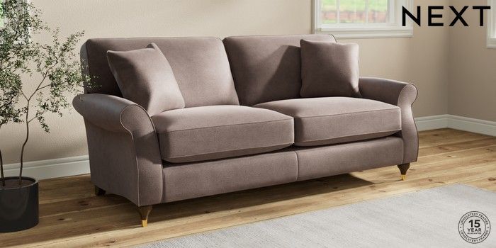 7.2.10 Ashford Relaxed Sit 3 Seater Sofa Luxe Chenille Mink Brown Modern Turned Metal Cap - Mid | Made Click here to use our website with more accessibility support, for example screen readers