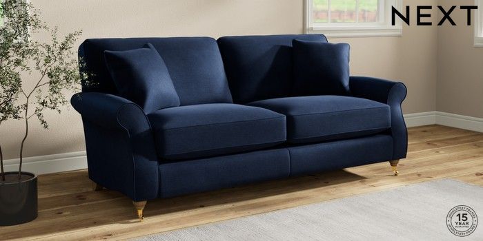 7.2.10 Ashford Relaxed Sit 3 Seater Sofa Luxe Chenille Navy Blue Castor - Light | Made Click here to use our website with more accessibility support, for example screen readers