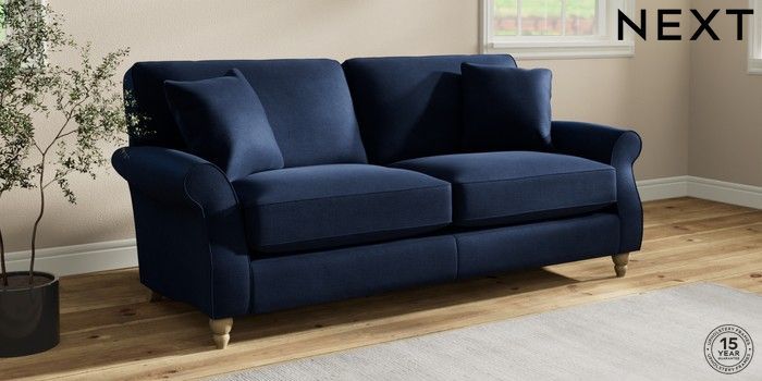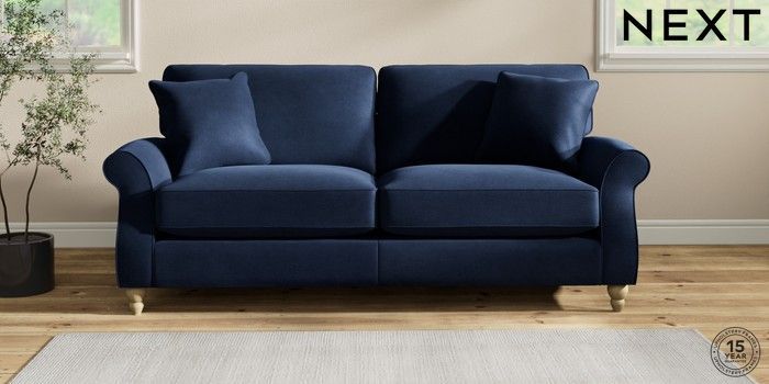7.2.10 Ashford Relaxed Sit 3 Seater Sofa Luxe Chenille Navy Blue Low Turned - Light | Made Click here to use our website with more accessibility support, for example screen readers