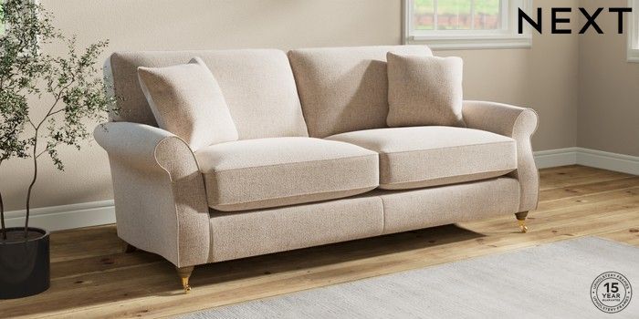 With its generous proportions and elegant scroll arms, the Ashford sofa range embodies classic country style. It's designed with our "Relaxed Sit" seat cushions, which feature innovatively developed high-density foam pieces set in channels and wrapped in fibre. This unique construction provides excellent comfort and a delightfully plumper, more laid-back look. These cushions offer a genuinely relaxed sit. Ensure regular plumping and turning to keep them looking their best. Since the seat cushions are reversible, we suggest you rotate and plump them often to maintain their shape and comfort. Make it uniquely yours by choosing from a huge range of coloured fabrics and a selection of feet options. This range has a sofa bed. Sofa beds are a practical and comfortable addition to any home, big or small. Our sofa beds are pull-out beds containing a separate 6cm occasional foam mattress. This pull-out mechanism is concealed underneath the main cushions. We have sofa beds across multiple ranges, but they all are 120cm in width and 180cm in length, so we suggest a double duvet and a double flat sheet to dress your sofa bed.