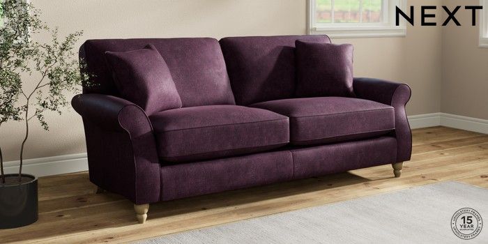 7.2.10 Ashford Relaxed Sit 3 Seater Sofa Plush Chenille Dark Plum Purple Low Turned - Light | Made Click here to use our website with more accessibility support, for example screen readers