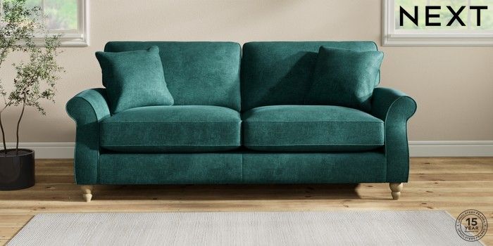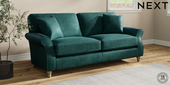 7.2.10 Ashford Relaxed Sit 3 Seater Sofa Plush Chenille Dark Teal Green Low Turned - Light | Made Click here to use our website with more accessibility support, for example screen readers
