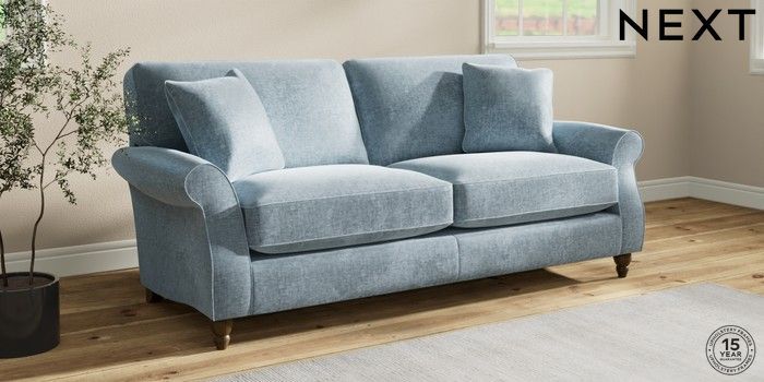 7.2.10 Ashford Relaxed Sit 3 Seater Sofa Plush Chenille Light Blue Low Turned - Mid | Made Click here to use our website with more accessibility support, for example screen readers