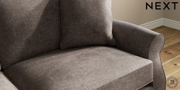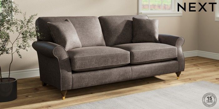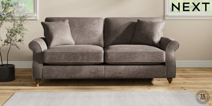 7.2.10 Ashford Relaxed Sit 3 Seater Sofa Plush Chenille Mink Brown Modern Turned Metal Cap - Mid | Made Click here to use our website with more accessibility support, for example screen readers