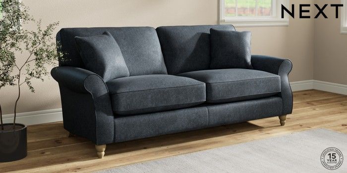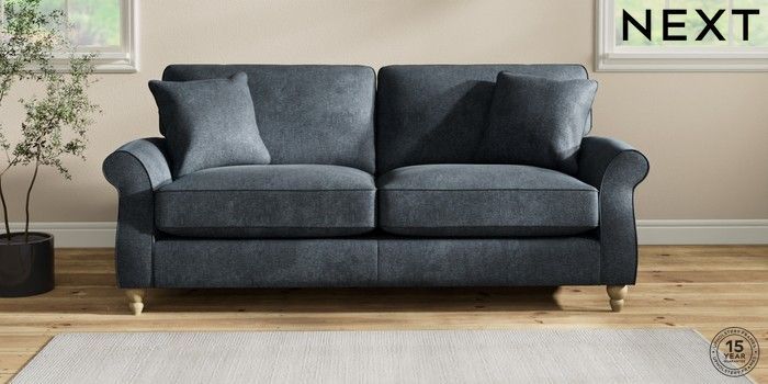7.2.10 Ashford Relaxed Sit 3 Seater Sofa Plush Chenille Slate Blue Low Turned - Light | Made Click here to use our website with more accessibility support, for example screen readers
