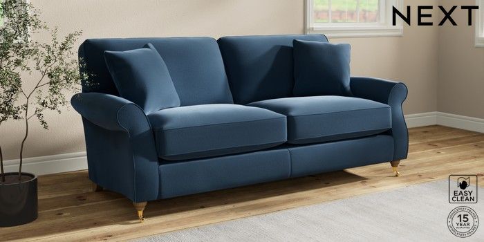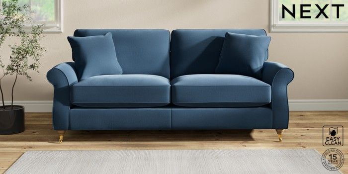 7.2.10 Ashford Relaxed Sit 3 Seater Sofa Plush Velvet Easy Clean Airforce Blue Castor - Light | Made Click here to use our website with more accessibility support, for example screen readers