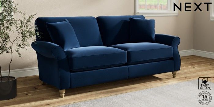 7.2.10 Ashford Relaxed Sit 3 Seater Sofa Plush Velvet Easy Clean Navy Blue Low Turned - Light | Made Click here to use our website with more accessibility support, for example screen readers
