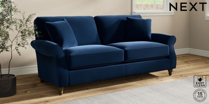 7.2.10 Ashford Relaxed Sit 3 Seater Sofa Plush Velvet Easy Clean Navy Blue Low Turned - Mid | Made Click here to use our website with more accessibility support, for example screen readers