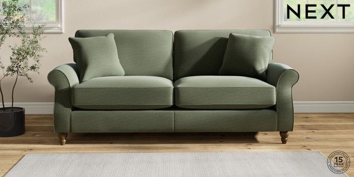 7.2.10 Ashford Relaxed Sit 3 Seater Sofa Relaxed Linen Look Dark Green Low Turned - Mid | Made Click here to use our website with more accessibility support, for example screen readers