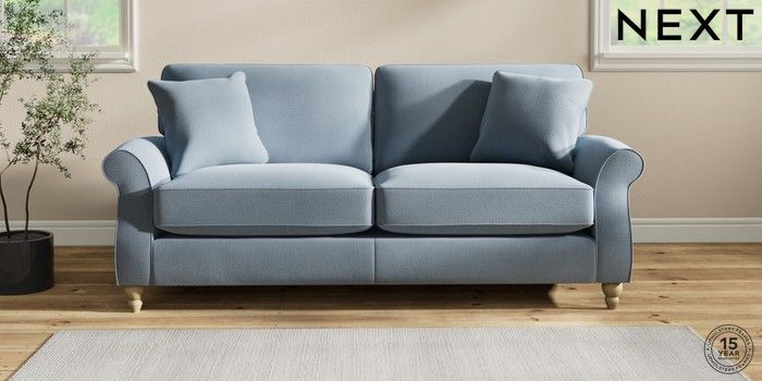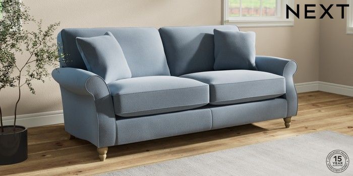 7.2.10 Ashford Relaxed Sit 3 Seater Sofa Relaxed Linen Look Mid Blue Low Turned - Light | Made Click here to use our website with more accessibility support, for example screen readers