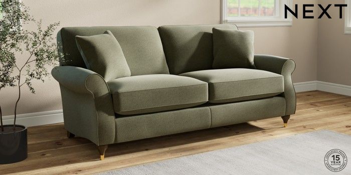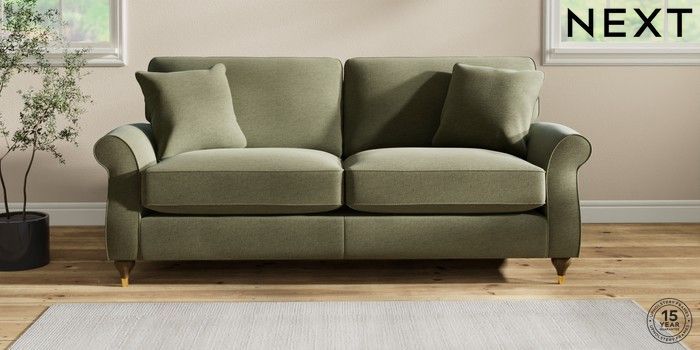 7.2.10 Ashford Relaxed Sit 3 Seater Sofa Ripple Chenille Mid Moss Green Modern Turned Metal Cap - Mid | Made Click here to use our website with more accessibility support, for example screen readers