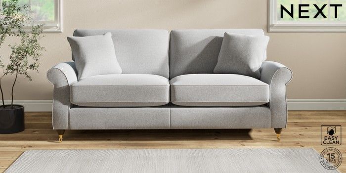 7.2.10 Ashford Relaxed Sit 3 Seater Sofa Tweedy Blend Easy Clean Light Silver Grey Castor - Mid | Made Click here to use our website with more accessibility support, for example screen readers