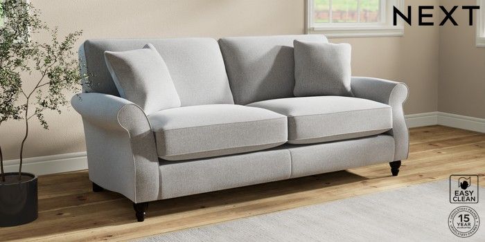 7.2.10 Ashford Relaxed Sit 3 Seater Sofa Tweedy Blend Easy Clean Light Silver Grey Low Turned - Dark | Made Click here to use our website with more accessibility support, for example screen readers