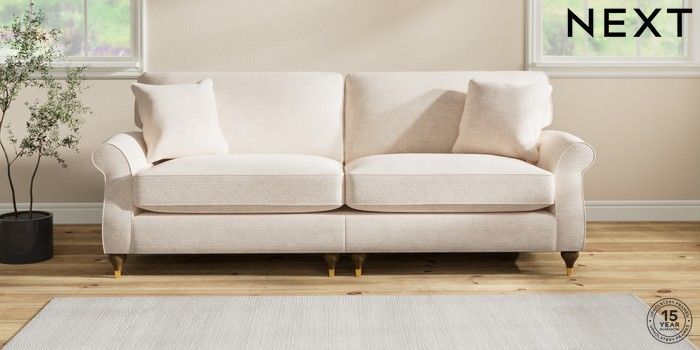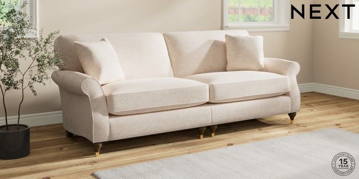 7.2.10 Ashford Relaxed Sit 4 Seater Sofa Boucle Chenille Oyster Modern Turned Metal Cap - Mid | Made Click here to use our website with more accessibility support, for example screen readers