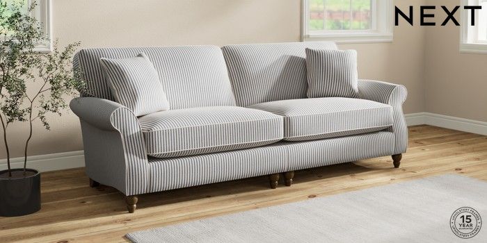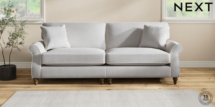7.2.10 Ashford Relaxed Sit 4 Seater Sofa Chenille Stripe Slate Blue Low Turned - Mid | Made Click here to use our website with more accessibility support, for example screen readers