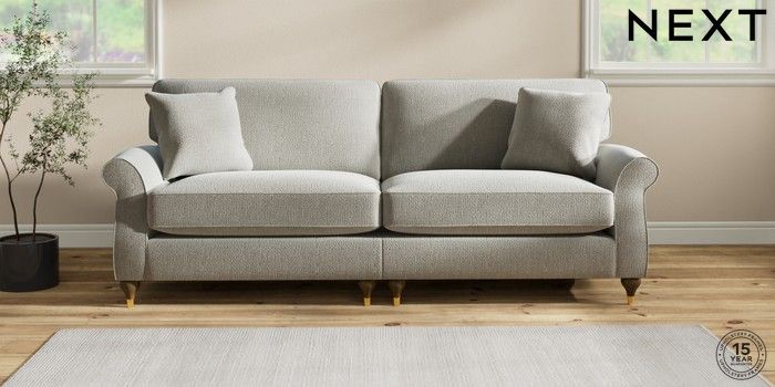 7.2.10 Ashford Relaxed Sit 4 Seater Sofa Chunky Texture Dove Modern Turned Metal Cap - Mid | Made Click here to use our website with more accessibility support, for example screen readers