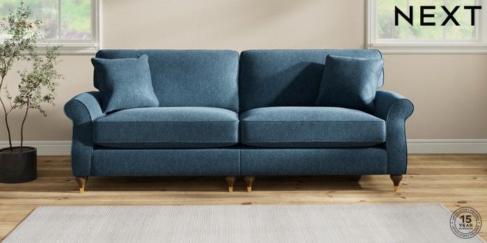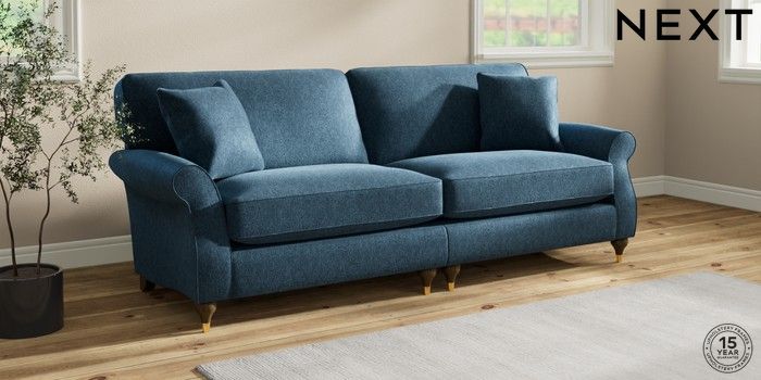 7.2.10 Ashford Relaxed Sit 4 Seater Sofa Cotswold Chenille Dark Blue Modern Turned Metal Cap - Mid | Made Click here to use our website with more accessibility support, for example screen readers