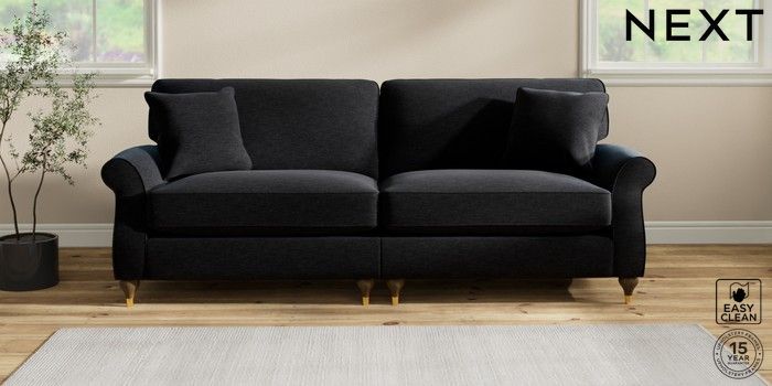 7.2.10 Ashford Relaxed Sit 4 Seater Sofa Fine Chenille Easy Clean Black Modern Turned Metal Cap - Mid | Made Click here to use our website with more accessibility support, for example screen readers