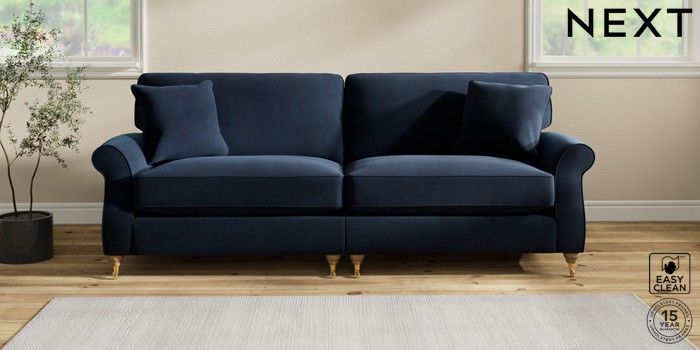 7.2.10 Ashford Relaxed Sit 4 Seater Sofa Fine Chenille Easy Clean Dark Navy Blue Castor - Light | Made Click here to use our website with more accessibility support, for example screen readers