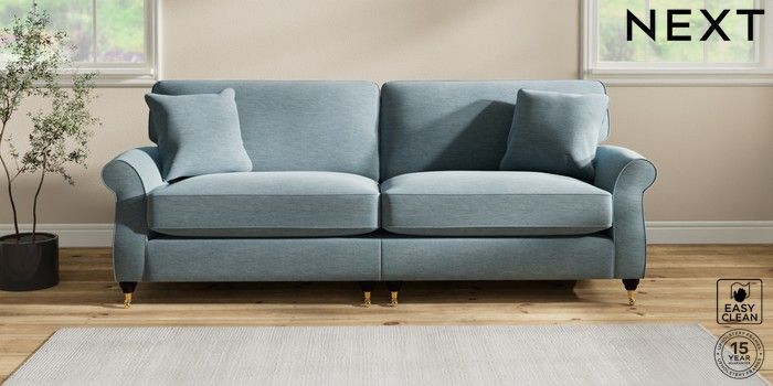 7.2.10 Ashford Relaxed Sit 4 Seater Sofa Fine Chenille Easy Clean Mid Blue Castor - Dark | Made Click here to use our website with more accessibility support, for example screen readers