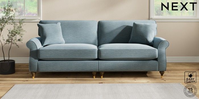 7.2.10 Ashford Relaxed Sit 4 Seater Sofa Fine Chenille Easy Clean Mid Blue Modern Turned Metal Cap - Mid | Made Click here to use our website with more accessibility support, for example screen readers