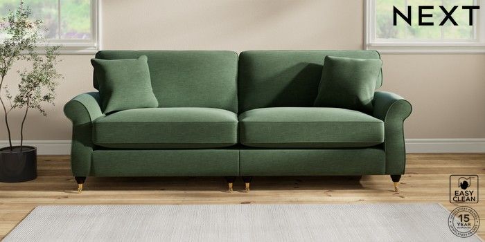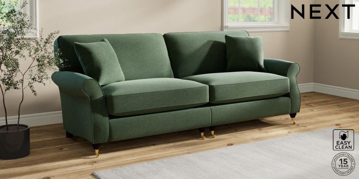 7.2.10 Ashford Relaxed Sit 4 Seater Sofa Fine Chenille Easy Clean Mid Khaki Green Castor - Dark | Made Click here to use our website with more accessibility support, for example screen readers