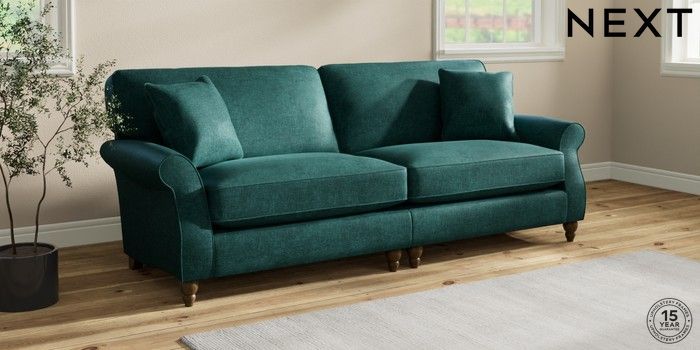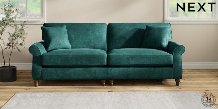 7.2.10 Ashford Relaxed Sit 4 Seater Sofa Plush Chenille Dark Teal Green Low Turned - Mid | Made Click here to use our website with more accessibility support, for example screen readers