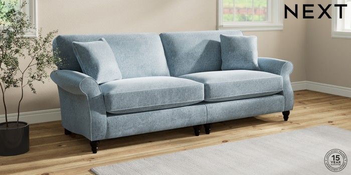 7.2.10 Ashford Relaxed Sit 4 Seater Sofa Plush Chenille Light Blue Low Turned - Dark | Made Click here to use our website with more accessibility support, for example screen readers