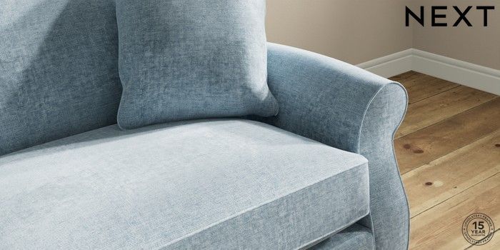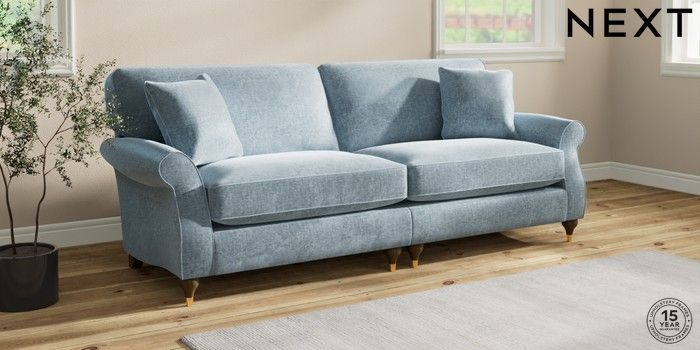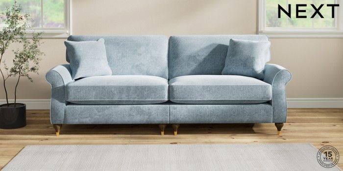 7.2.10 Ashford Relaxed Sit 4 Seater Sofa Plush Chenille Light Blue Modern Turned Metal Cap - Mid | Made Click here to use our website with more accessibility support, for example screen readers