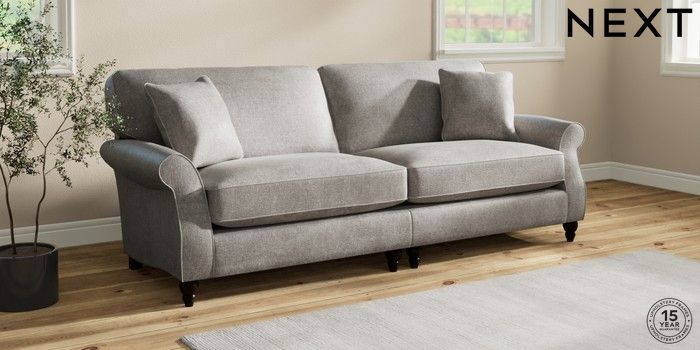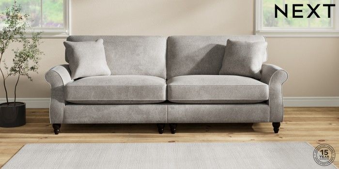7.2.10 Ashford Relaxed Sit 4 Seater Sofa Plush Chenille Light Grey Low Turned - Dark | Made Click here to use our website with more accessibility support, for example screen readers