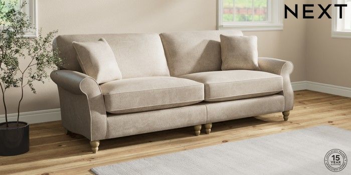 7.2.10 Ashford Relaxed Sit 4 Seater Sofa Plush Chenille Light Natural Low Turned - Light | Made Click here to use our website with more accessibility support, for example screen readers