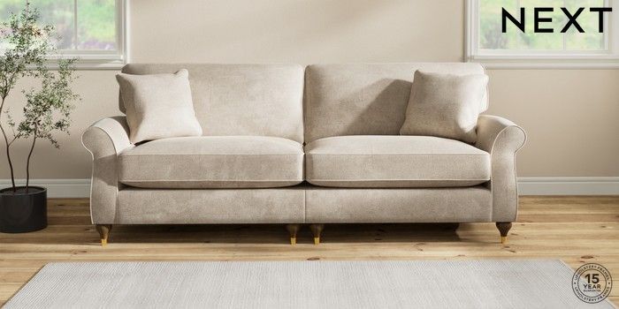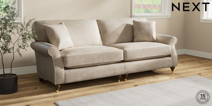 7.2.10 Ashford Relaxed Sit 4 Seater Sofa Plush Chenille Light Natural Modern Turned Metal Cap - Mid | Made Click here to use our website with more accessibility support, for example screen readers