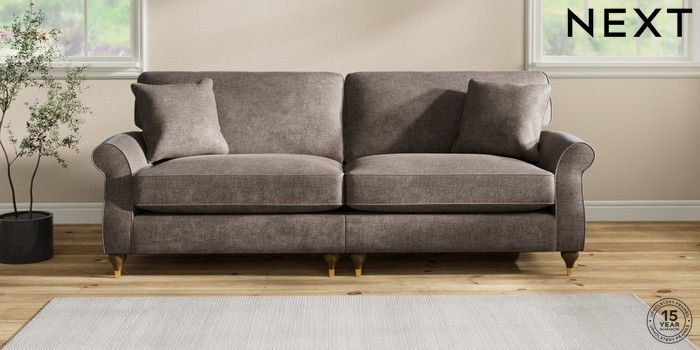 7.2.10 Ashford Relaxed Sit 4 Seater Sofa Plush Chenille Mink Brown Modern Turned Metal Cap - Mid | Made Click here to use our website with more accessibility support, for example screen readers