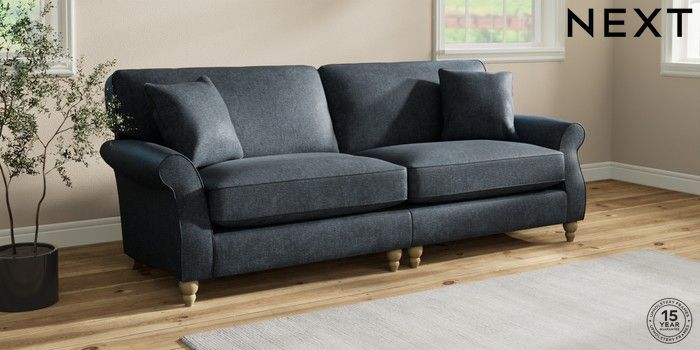 7.2.10 Ashford Relaxed Sit 4 Seater Sofa Plush Chenille Slate Blue Low Turned - Light | Made Click here to use our website with more accessibility support, for example screen readers