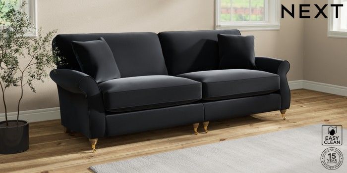 7.2.10 Ashford Relaxed Sit 4 Seater Sofa Plush Velvet Easy Clean Charcoal Grey Castor - Light | Made Click here to use our website with more accessibility support, for example screen readers