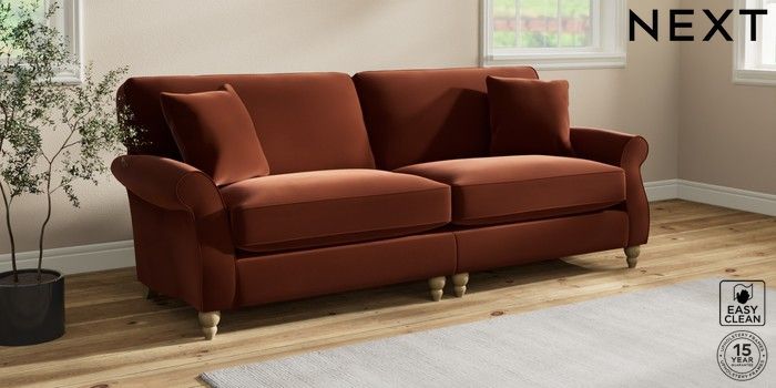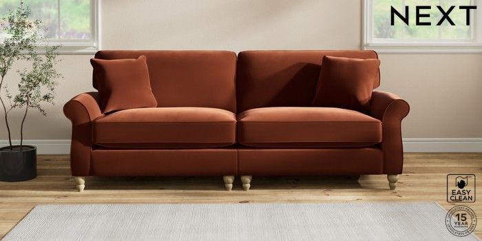 7.2.10 Ashford Relaxed Sit 4 Seater Sofa Plush Velvet Easy Clean Ginger Orange Low Turned - Light | Made Click here to use our website with more accessibility support, for example screen readers