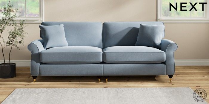 7.2.10 Ashford Relaxed Sit 4 Seater Sofa Relaxed Linen Look Mid Blue Castor - Dark | Made Click here to use our website with more accessibility support, for example screen readers