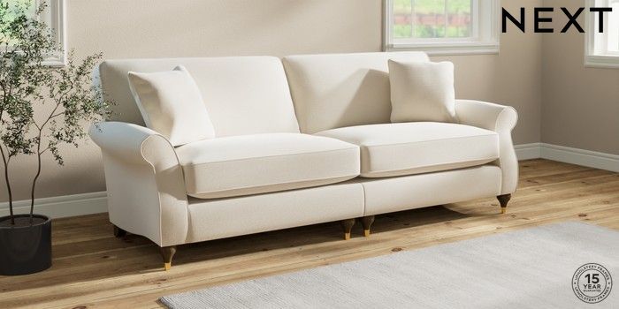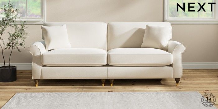 7.2.10 Ashford Relaxed Sit 4 Seater Sofa Ripple Chenille Oyster Modern Turned Metal Cap - Mid | Made Click here to use our website with more accessibility support, for example screen readers