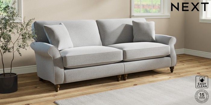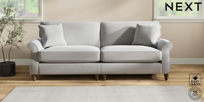 7.2.10 Ashford Relaxed Sit 4 Seater Sofa Tweedy Blend Easy Clean Light Silver Grey Low Turned - Mid | Made Click here to use our website with more accessibility support, for example screen readers