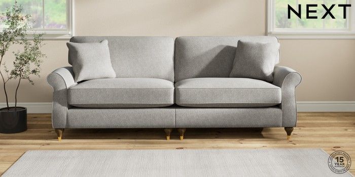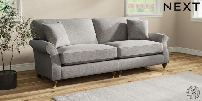 7.2.10 Ashford Relaxed Sit 4 Seater Sofa Tweedy Chenille Mid Grey Modern Turned Metal Cap - Mid | Made Click here to use our website with more accessibility support, for example screen readers