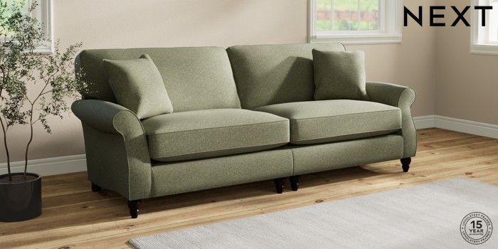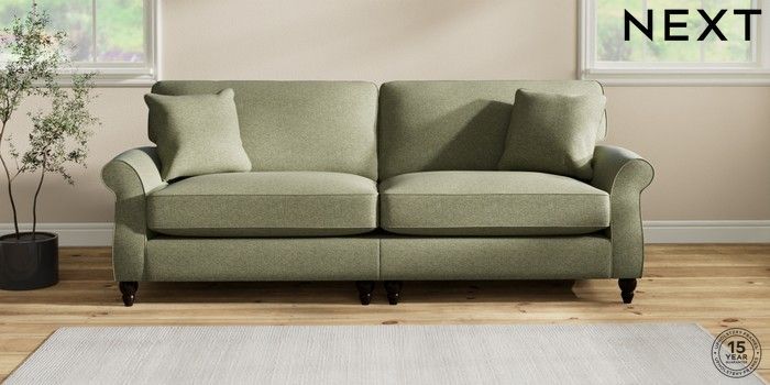 7.2.10 Ashford Relaxed Sit 4 Seater Sofa Tweedy Chenille Mid Moss Green Low Turned - Dark | Made Click here to use our website with more accessibility support, for example screen readers