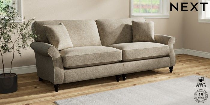 7.2.10 Ashford Relaxed Sit 4 Seater Sofa Woven Chenille Easy Clean Mid Natural Low Turned - Dark | Made Click here to use our website with more accessibility support, for example screen readers