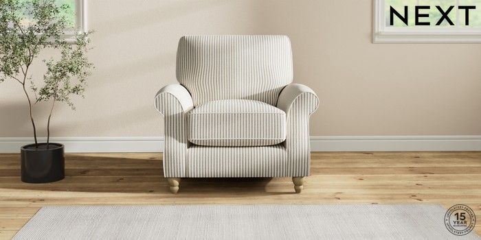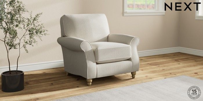 7.2.10 Ashford Relaxed Sit Armchair Chenille Stripe Moss Green Low Turned - Light | Made Click here to use our website with more accessibility support, for example screen readers