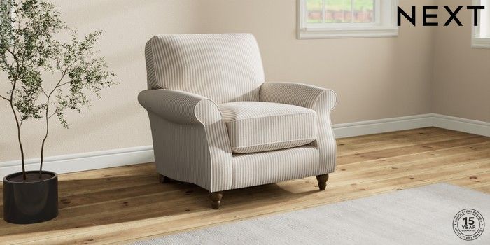 7.2.10 Ashford Relaxed Sit Armchair Chenille Stripe Natural Low Turned - Mid | Made Click here to use our website with more accessibility support, for example screen readers